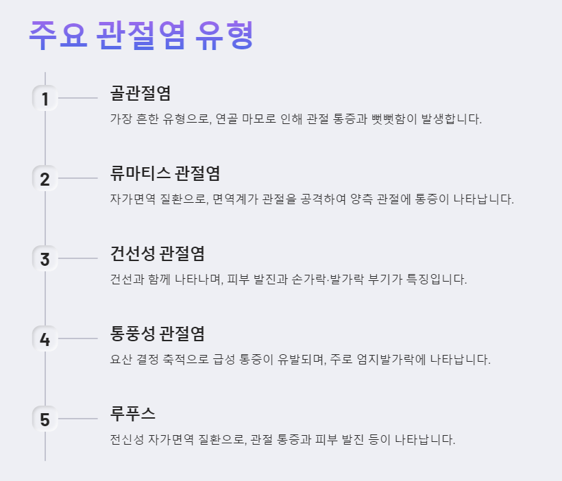 여기서 우리가 가장 자주 겪는 관절염의 형태와 증상, 그리고 어떻게 관리할 수 있는지 알아보겠습니다. 조금 더 쉽게 풀어 설명해 드릴게요. 우리의 몸을 더 잘 이해하고 건강하게 유지하는 데 도움이 되길 바랍니다.