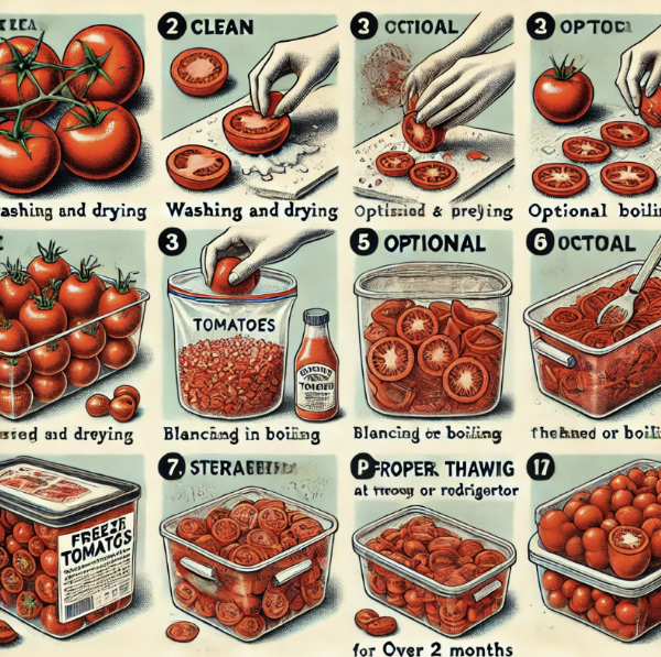 | 냉동 보관 | 요리용 토마토, 장기 보관 | 최대 6개월 | 해동 후 신선도는 떨어질 수 있으나 요리용으로 적합 |